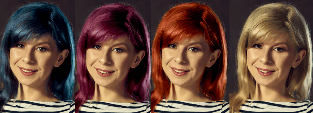 W następnym punkcie znajdziesz garść inspiracji! Pamiętaj też, że niektóre elementy możesz zmienić także podczas edycji zdjęć, tak jak ja zrobiłam poniżej z moim kolorem włosów. Myślę, że w niebieskim mi do twarzy 😉
